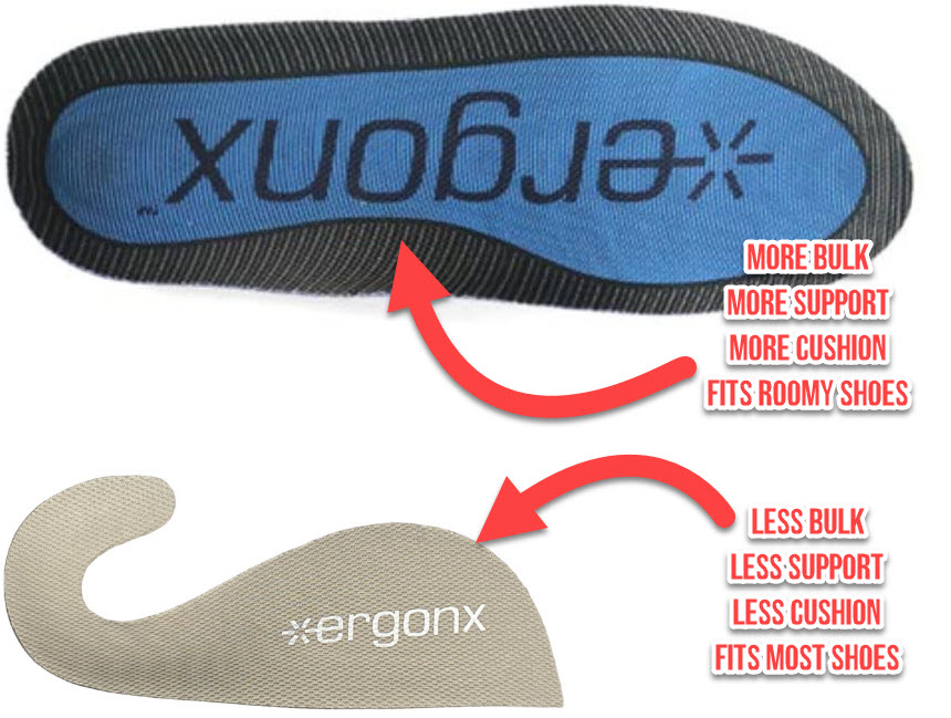 Ergonx Ultrasoft insoles feature long, high arch support. This design helps raise your arch and limits overpronation, ensuring your feet work less and you experience less pain. When we wear a supportive insole it allows the foot to function in a more neutral and rested position.