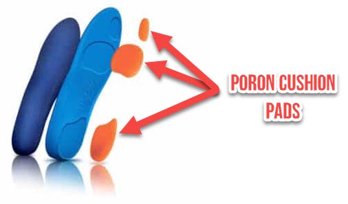 Cushioning Poron pads to slow reaction forces on the entire foot