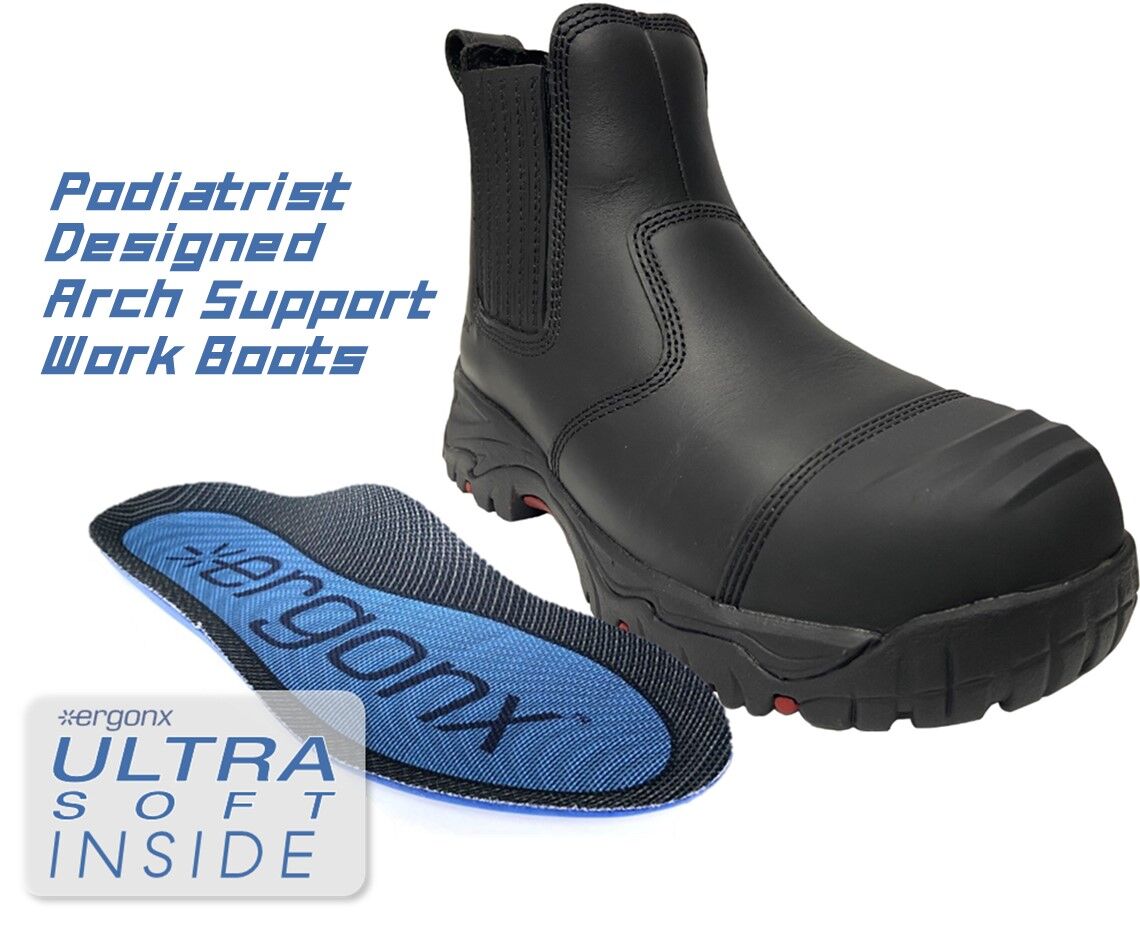 The ultra-soft arch support insole helps to further cushion the foot, reduces fatigue, and makes our work boots extremely comfortable. By supporting the arches of the feet it helps to rest the supporting ligaments and muscles of the feet.