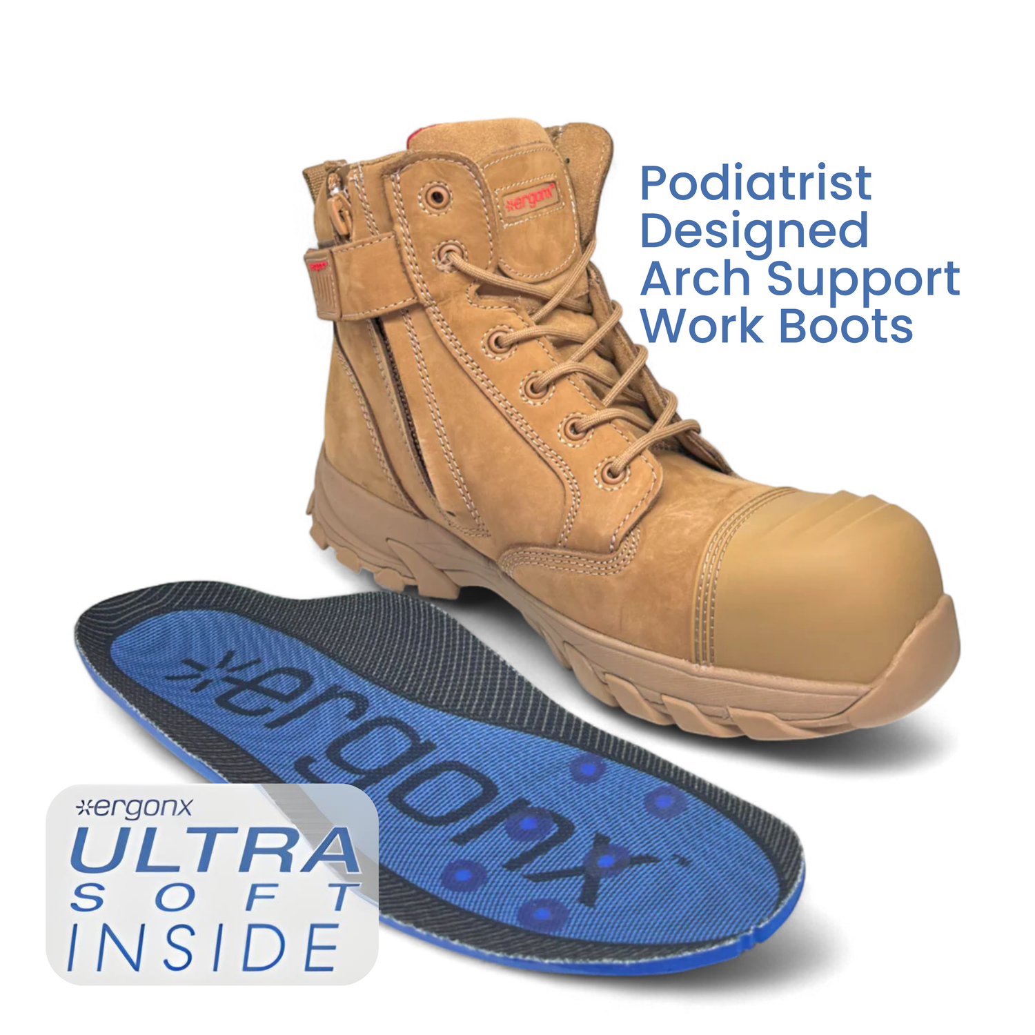 The ultra-soft arch support insole helps to further cushion the foot, reduces fatigue, and makes our work boots extremely comfortable. By supporting the arches of the feet it helps to rest the supporting ligaments and muscles of the feet.