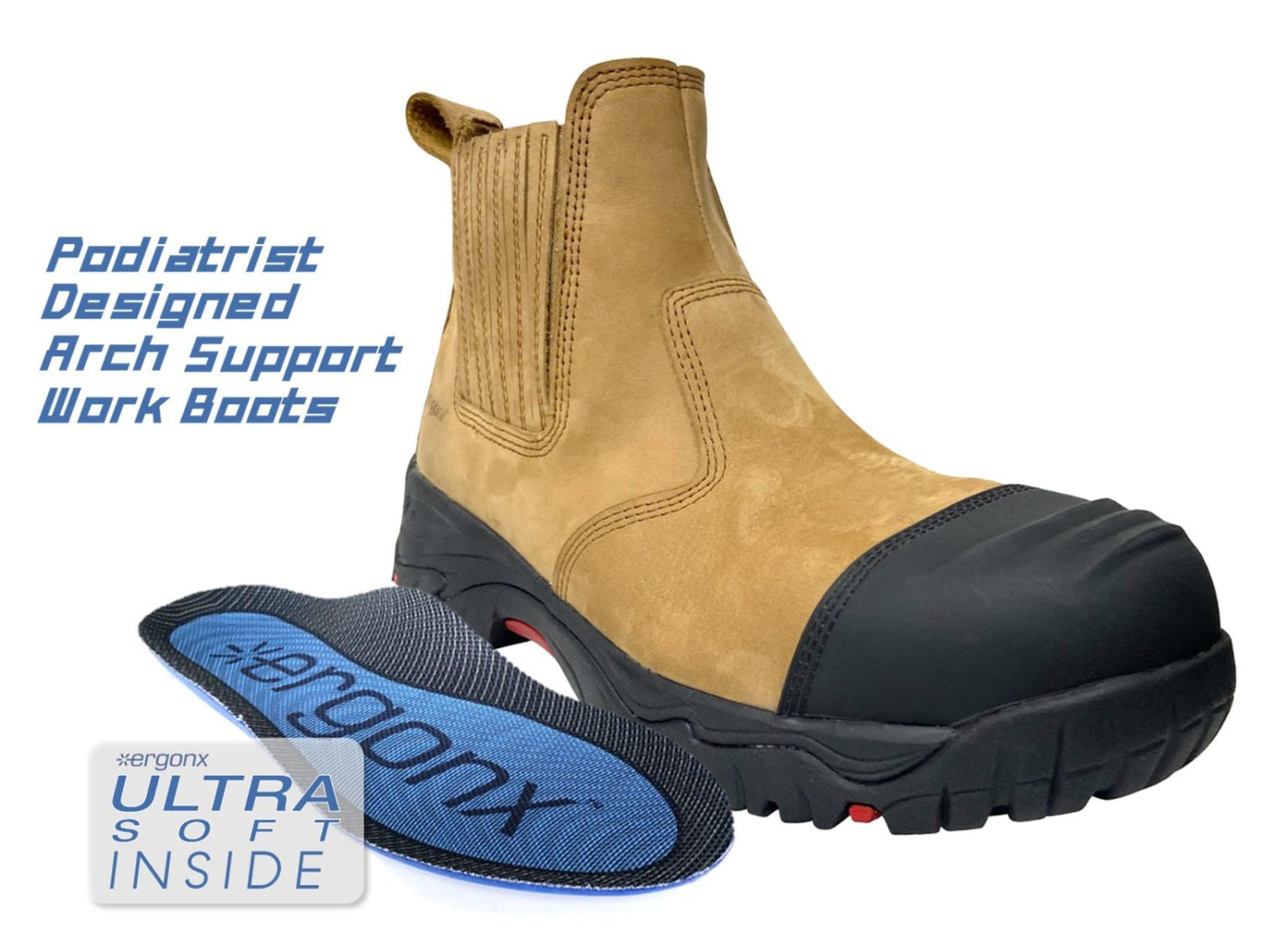 The ultra-soft arch support insole helps to further cushion the foot, reduces fatigue, and makes our work boots extremely comfortable. By supporting the arches of the feet it helps to rest the supporting ligaments and muscles of the feet.