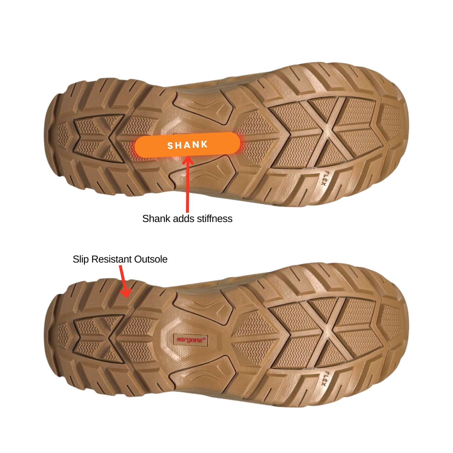 We have modernized the traditional steel shank by changing the material to polypropylene to make it airport friendly and lighter. The shank helps to add stiffness to the boot which helps to reduce strain over the middle of the foot and prevent foot pain.