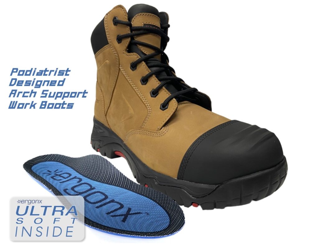 The ultra-soft arch support insole helps to further cushion the foot, reduces fatigue, and makes our work boots extremely comfortable. By supporting the arches of the feet it helps to rest the supporting ligaments and muscles of the feet.