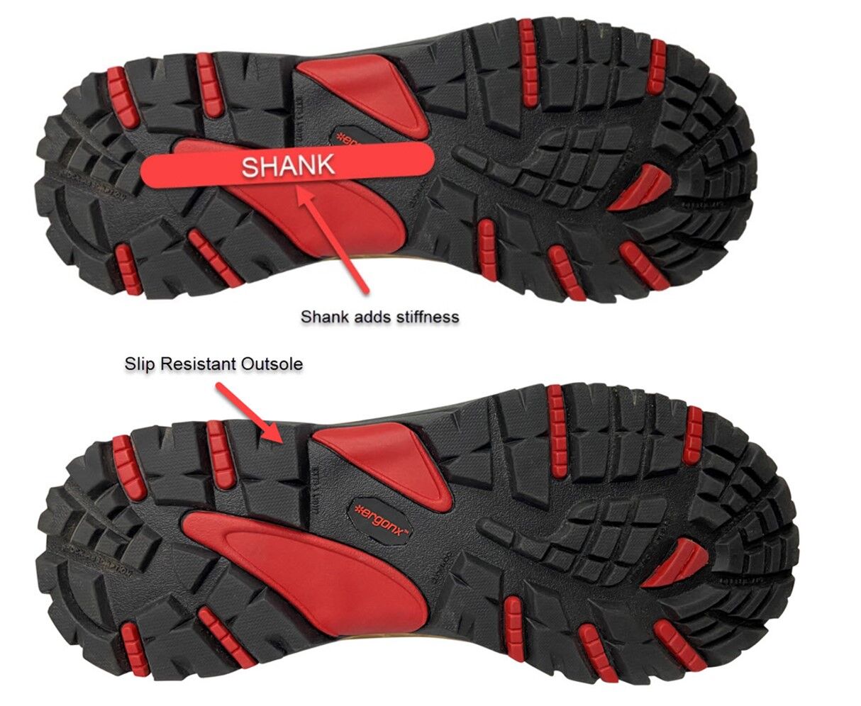 We have modernized the traditional steel shank by changing the material to polypropylene to make it airport friendly and lighter. The shank helps to add stiffness to the boot which helps to reduce strain over the middle of the foot and prevent foot pain.